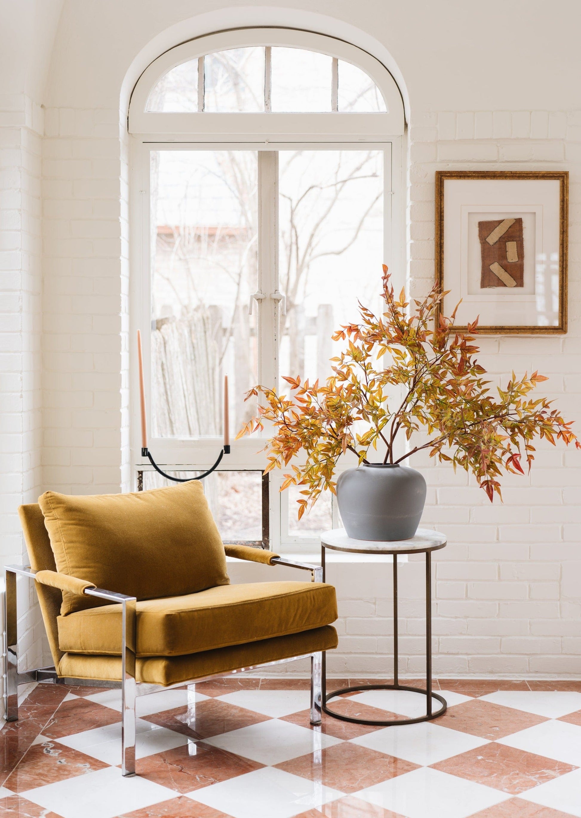 As featured in Homes & Gardens, our artificial nandina branch with leaves in warm fall hues is among the best nature-inspired faux leaf stems to elevate your autumn home decor. Also known as Heavenly Bamboo and Sacred Bamboo, these colorful burgundy green fake tropical branches are simple to style in a tall vase.