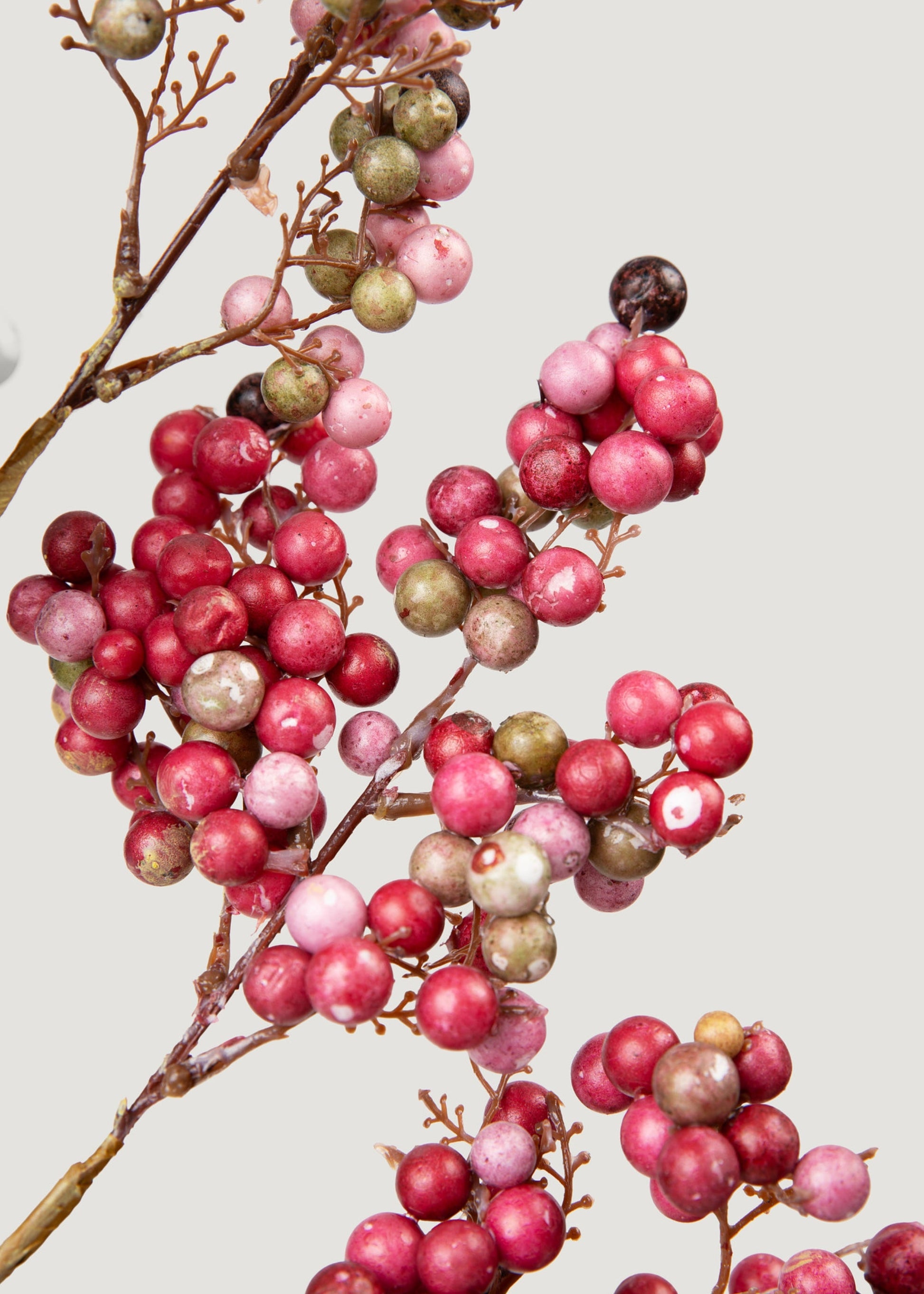 Elevate fall-to-holiday transitional interior design with this artificial berry cluster branch. It has berries in mauve, olive green, and light pink, creating a festive color combination that is stunning for spring. Style a few faux branches in a tall table vase for a minimalist fall look, or showcase this berry branch in a spring arrangement with flowers and bright greens. Whatever you choose, the result is a realistic botanical centerpiece that invites nature's seasonal beauty into your home.